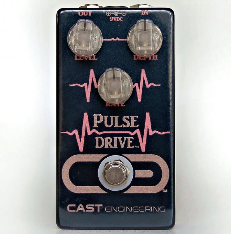 The Pulse Drive is our enhanced version of the classic transistor based, Anthony Leo tremolo circuit. You can get those warm, clean tremolo tones to swampy vibes to choppy goodness. A very natural tremolo, the Pulse Drive delivers the tube like tones reminiscent of the classic amps from the 60s. Having 30db of boost on board, you will never have to worry about getting lost in the mix when kicking in this tremolo. With the level knob you are able to add some extra grit to the tremolo or roll the depth knob all the way down and have straight boost to send your amp into sweet overdrive land! This tremolo is one you have to play and feel to truly understand the magic inside this little box. Visually this pedal stands out with our light up knobs that blink with the rate of the tremolo