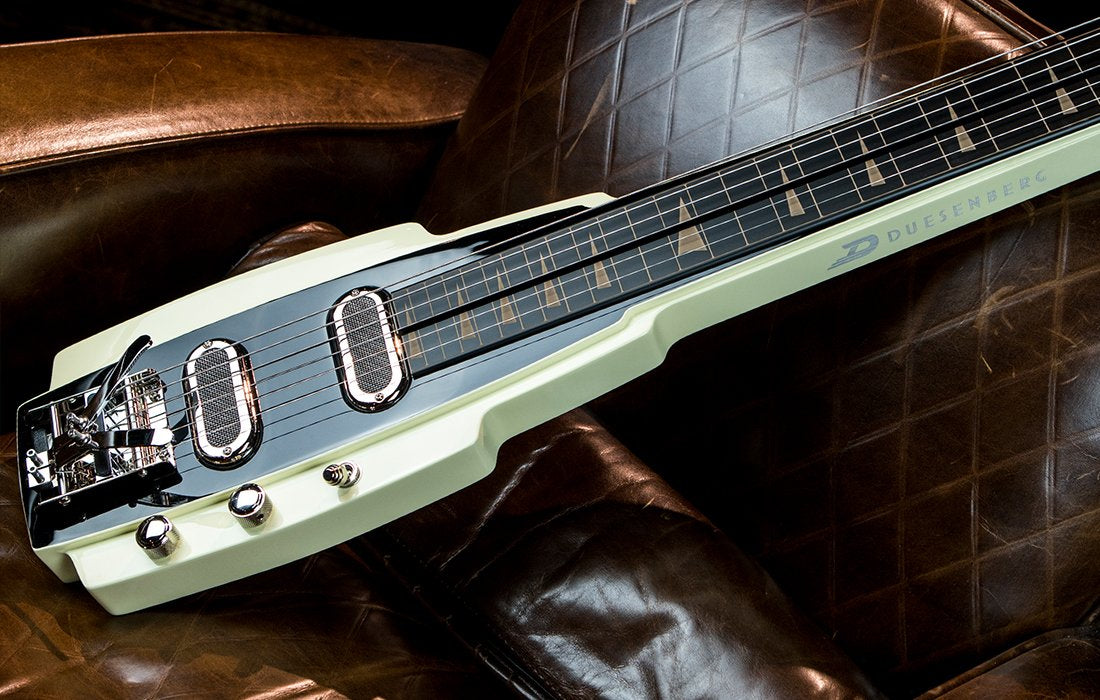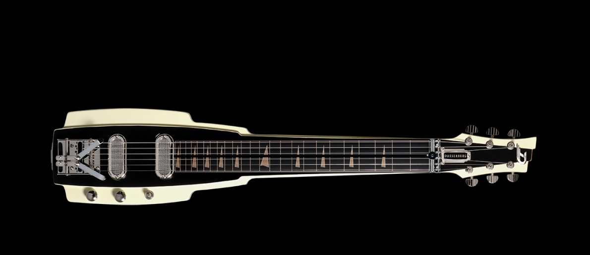 A roller nut provides tuning stability and the Duesenberg Vintage Trouble singlecoil pickups deliver great tone with a rough and wild timbre, combined with a fast attack and rich overtones that only singlecoil pickups can deliver. The Duesenberg Speed pot controls work with a path of just 70˚ in order to achieve the lapsteel’s typical swelling “wah” effects.